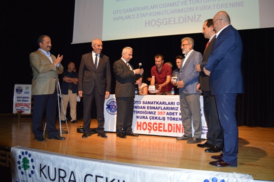 Üyelerimiz için TOKİ’ye yaptırdığımız 2.Etap 357 konutun kuralarını çektik.13.08.2017 Pazar günü saat 11:00'de Kadir Has Kongre Merkezinde gerçekleşen kura törenimize, Valimiz Sayın Süleyman KAMÇI, önceki dönem Bakanımız Sayın Taner YILDIZ,Kocasinan Kaymakamımız Sayın Ali CANDAN, AKP İl Başkanı Sayın Hüseyin Cahit ÖZDEN, AKP Kocasinan İlçe Başkanı Sayın Muammer KILIÇ, TOKİ Finansman Dairesi Şube Müdürü Sayın Bülent ŞEREFOĞLU ,Bilim,Sanayi ve Teknoloji İl Müdürü Sayın Kamil AKÇADIRCI,TESKOMB Genel Başkan Vekili Sayın Mustafa ALAN,KESOB Başkanı Sayın Ahmet ÖVÜÇ ve üyelerimiz katıldı.Kura töreninin açılış konuşmasını yapan Oda Başkanımız Şeyhi ODAKIR odamızın faaliyetlerinden ve projelerinden bahsetti.Kura törenimize katılımlarından dolayı kıymetli protokole teşekkür eder,kura sonuçlarının üyelerimize hayırlı olmasını dileriz.
