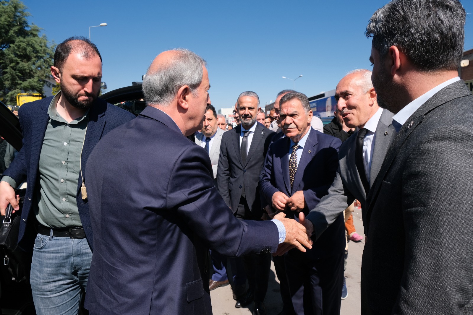 🔴Bakan Akar’ı coşkuyla ve sevgiyle ağırlayan esnaflar, Akar’la fotoğraf çekindi, sohbet etme imkanı buldu. Toplantı hatıra fotoğrafı çekinilmesiyle son buldu.
