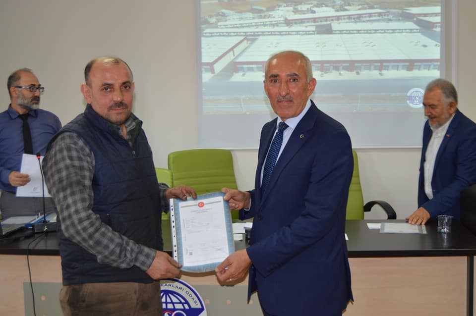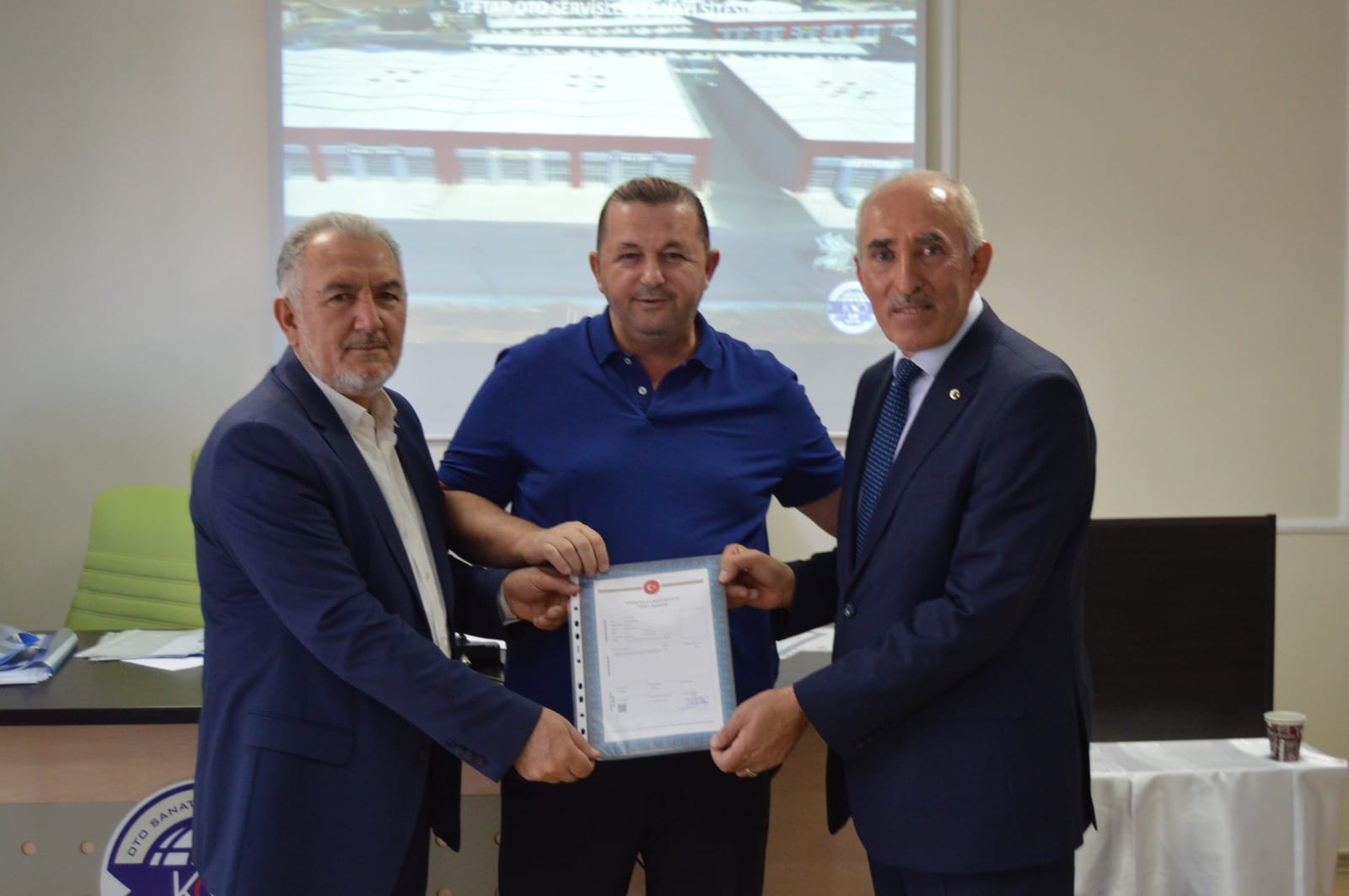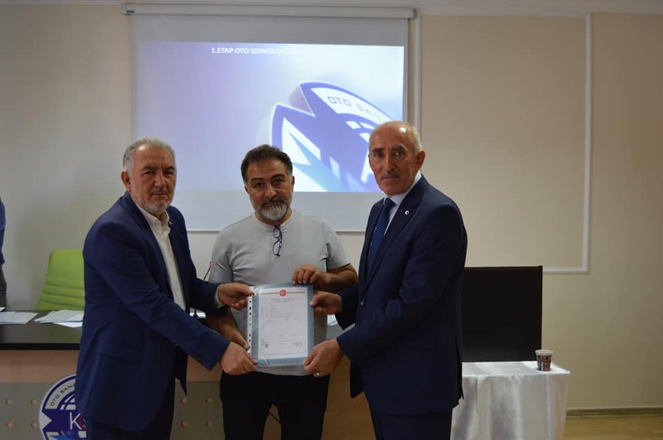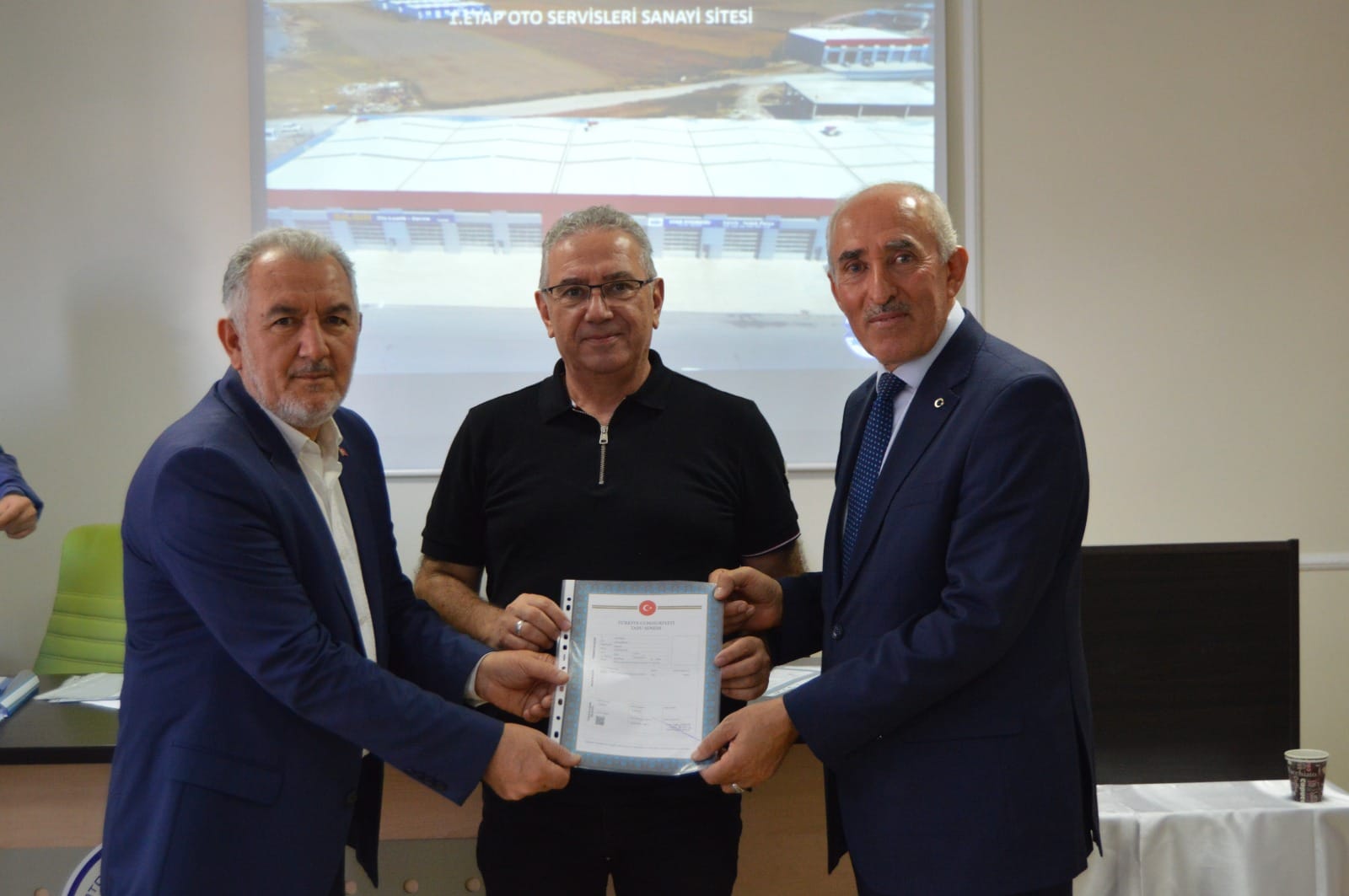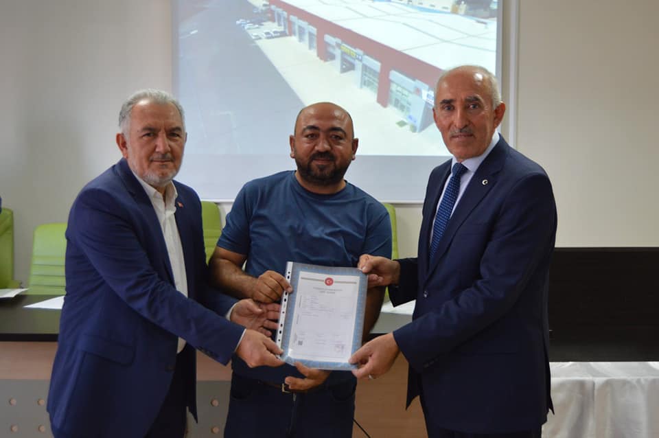 1.Etap Oto Servisleri Sanayi Sitemizin birinci grup üyelerimizin tapularını teslim ettik. Başkanımız Şeyhi Odakır yapmış olduğu konuşmasında, Sanayi ve Teknoloji Bakanlığı desteği ile yapılan işyerlerinin Bakanlığa olan borcunun 4 yıl öncesinden kapatılarak tapularının dağıtıldığını söyledi. Emeği geçen herkese teşekkür ederek, esnaf ve sanatkârlarımıza hayırlı uğurlu olmasını diledi.